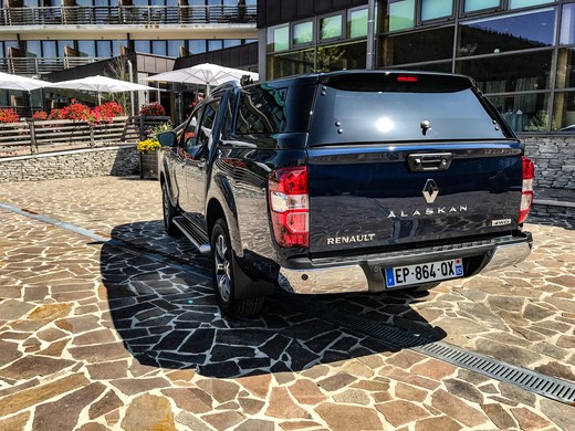 "Renault Alaskan" ir vidējās klases pikaps ar 5,3 m kopgarumu un trīs metrus garu riteņu bāzi. Tas apveltīts ar 230 mm klīrensu, būs pieejams versijā ar aizmugures riteņu piedziņu vai pilnpiedziņas variantā, ar parasto vai piecvietīgo kabīni. Automašīnas kravnesība ir 1,1 tonna un tā var vilkt līdz pat 2,3 tonnas smagu piekabi vai treileri. No opciju saraksta iespējams izvēlēties aizmugures ass bloķējošo diferenciāli ar elektronisko vadību vai mehānisko pašbloķējošo diferenciāli, multimediju sistēmu ar septiņu collu ekrānu un navigāciju, 360 grādu apkārtnes kontroles sistēmu, divu zonu klimatkontroli un priekšējo sēdekļu apsildi.