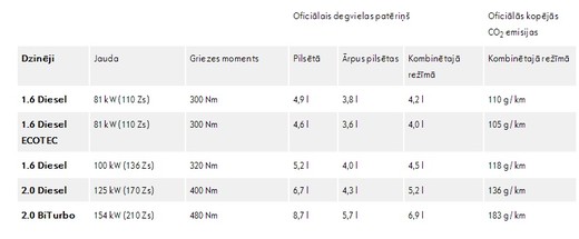 Zemāk atradīsiet pārskatu par dīzeļdzinējiem, kas pašlaik pieejami Insignia. Visas pozīcijas attiecas uz Grand Sport sedanu.