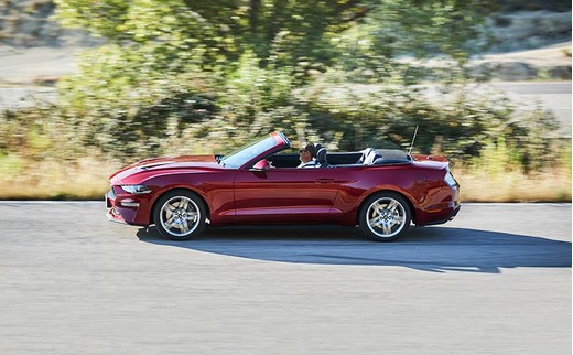 Nekavējoties atpazīstamais spēcīgais Mustang profils tagad ieguvis elegantāku un sportiskāku veidolu, ko izceļ LED apgaismojuma tehnoloģija, kā arī 11 izteiksmīgu virsbūves krāsu un jaunu vieglmetāla disku izvēles iespējas. Ir plānots, ka jaunajam Mustang būs visu laiku ātrākais ieskrējiens, pateicoties uzlabotam 5,0 litru V8 dzinējam ar 450 ZS jaudu apvienojumā ar Ford jauno 10 pakāpju automātisko pārnesumkārbu.