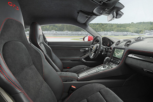 No saviem vājākajiem brāļiem saimes flagmanis atšķiras ar tonētiem aizmugures lukturiem, melniem 20 collu riteņu diskiem un izplūdes cauruļu uzgaļiem un GTS sliekšņu uzlikām. Salonā ir divos veidos elektriski regulējami sporta sēdekļi ar alkantara ielaidumiem un GTS uzrakstiem uz galvas atbalstiem, alkantara apdare stūrei, elkoņa balstiem un priekšējam panelim. Jau sērijveidā tas aprīkots ar 10 mm zemāku PASM sporta piekari, Sport Chrono paketi, Porsche Torque Vectoring (PTV) sistēmu un bloķējošo diferenciāli aizmugures asī. Transmisiju izvēlē manuālā sešu pakāpju vai Porsche PDK divsajūgu ātrumkārba.