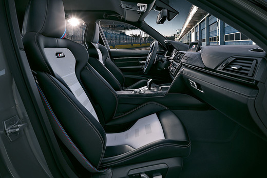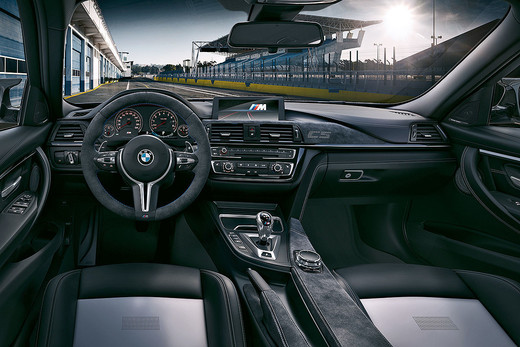 Salonā ar alkantara apdari un uzkrītoši sarkanu motora starta pogu, iebūvēti ādas sporta sēdekļi un atstāta arī klimatkontroles sistēma ar Harman Kardon mūziku. Automašīnai ir M Performance stūre, ko par piemaksu var nomainīt pret stūri ar alkantara apdari, kas vēl labāk turēsies rokās. Obligāta sastāvdaļa CS logotipi, kas izvietoti dažādās vietās salonā.