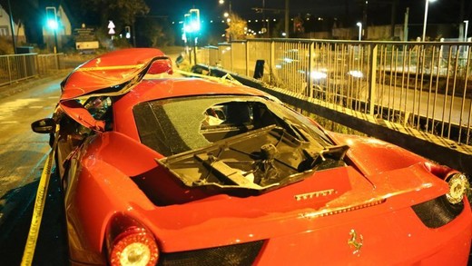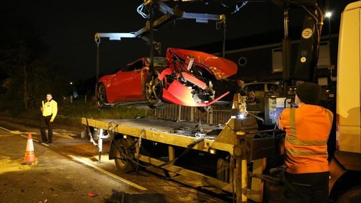 Britu izdevums “The Sun” vēsta, ka avārija notikusi netālu no Kroidonas pilsētas. Lielā ātrumā braucošais Ferrari ieskrējis aizmugurē minivenam, kas pēc inerces turpinājis kustību un uztriecies priekšā esošajiem spēkratiem.