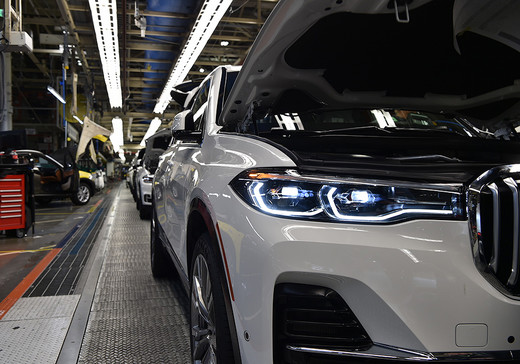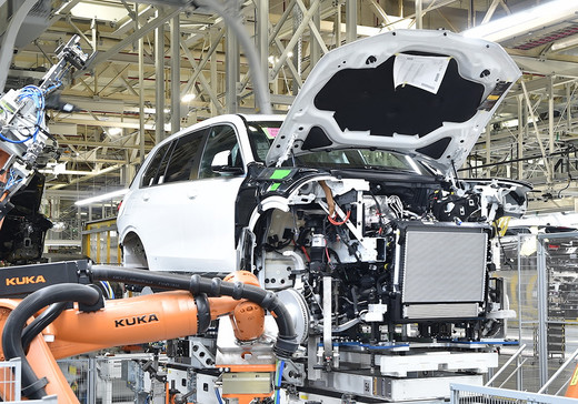 "BMW" publicējis pirmos attēlus ar savu SUV modeļu gammas flagmani "X7", kas nobildēts uz konveijera līnijas kompānijas rūpnīcā Spartanburgā, ASV.
