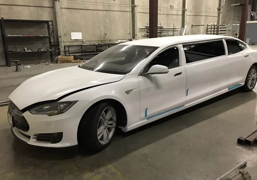 "eBay" tirdzniecības vietnē pārdošanā izlikts kompānijas "Big Limos" par limuzīnu pārbūvētais "Tesla Model S" elektromobilis. Projekta autori apgalvo, ka tas ir pirmais pagarinātais "Model S" sedans pasaulē.