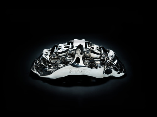 Ražotājs apgalvo, ka "Bugatti" bremžu mehānismi ir pasaulē lielākā funkcionējošā detaļa no titāna, kas izgatavota ar 3-D printeri.