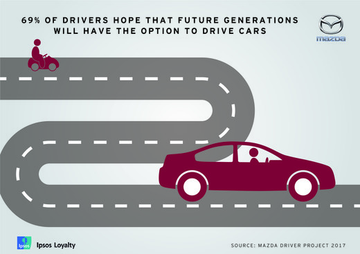 Mazda uzskata, ka autovadīšana ir prasme, ko cilvēki vēlas saglabāt. Tā ir darbība, kas var būt gan aizraujoša, gan funkcionāla, un daudzi vēlētos šo prasmi saglabāt nākamajām paaudzēm. Šis sentiments ir skaidri saredzams pētījuma rezultātos, kas apliecina būtisku emocionālo saikni starp automobili un tā vadītāju. Piemēram, vidēji 69% autovadītāju “cer, ka arī nākamajām paaudzēm būs iespējas vadīt automobiļus”, Polijā šim rādītājam sasniedzot 74%, bet Apvienotajā Karalistē, Vācijā, Francijā un Zviedrijā – 70% vai vairāk.