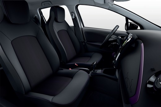 2018. gada modelis ZOE būs tiek piedāvāta jaunā, elegantā, tumši metāliskā virsbūves krāsā: melleņu purpurs (Blueberry Purple) Populārā pilsētas elektriskā automobiļa augstākās kvalitātes versija INTENS pieejama ar specifisku ekskluzīvu saskaņotu dizainu melleņu purpura toņos (Blueberry Purple apdares paketi), kas ietver purpura ārieni ar atlasa violetiem apdares elementiem panelī un pie ventilatoriem, pie pārnesumu sviras pamatnes, ap skaļruņiem, kā arī dekoratīvas nošuves uz melna un violeta auduma polsterējuma.