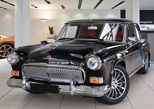 Vācijas auto pārdošanas portālā Mobile.de ievietots sludinājums, kurā tiek piedāvāts GAZ M-2 Wolga V12 – kupeja, kuras pamatā ir krievu sedans GAZ-21 „Volga ” un Mercedes S600.