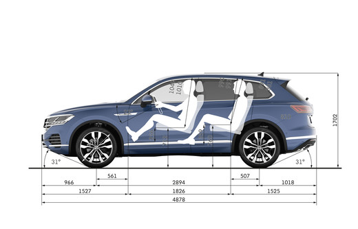 Jauni izmēri un samazināts svars. Salīdzinot ar priekšgājējiem, trešās paaudzes Touareg ir platāks un garāks. Jaunie izmēri rada pozitīvu ietekmi gan uz automašīnas proporcijām, gan interjera plašumu. Piemēram, lielāks automobiļa garums nodrošina ievērojami plašāku bagāžas nodalījumu – tā tilpums palielināts no 697 līdz 810 litriem (ar nenolaistiem aizmugurējiem sēdekļiem). Neskatoties uz palielināto garumu un platumu, automašīnas virsbūve ir par 160 kg vieglāka, pateicoties alumīnija (48%) un augsto tehnoloģiju tērauda (52%) sakausējuma izmantošanai.