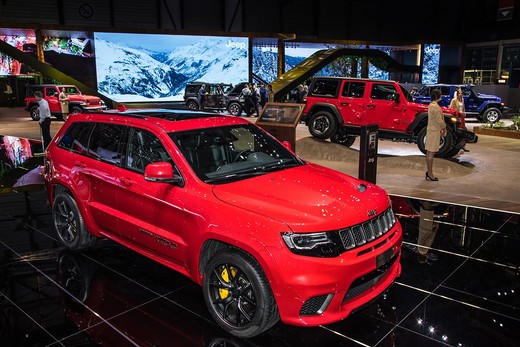 Ženēvas automašīnu izstādes apmeklētāji tāpat nevarēja atraut acis no visu laiku ātrākā “Jeep” visurgājēja – “Grand Cherokee Trackhawk”. Tajā tiek montēts 6,2 l V8 dzinējs, kurš sasniedz 700 ZS un 868 Nm. Ar “TorqueFlite” astoņu grādu automātisko pārnesumkārbu, lielais SUV līdz 100 km/h ieskrienas vien 3,7 s laikā, kā arī sasniedz 289 km/h ātrumu. Izmērs tiešām nenozīmē mazu efektivitāti – piemēram, jaunā “Brembo” bremžu sistēma garantē, ka visurgājējs no 100 km/h ātruma līdz nullei apstājas 37 m distancē.