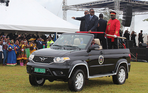 Āfrikas valsts Namībijas prezidents Hage Gotfrīds Geingobs sveicis valsts iedzīvotājus Neatkarības dienā no īpaša parādes kabrioleta, kam tiek izmantots pārbūvēts krievu UAZ Patriot apvidus auto.