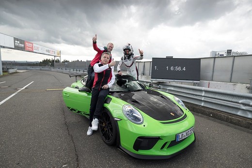 16. aprīlī Nirburgringas Nordšleifes trasē Vācijā Porsche 911 GT3 RS uzstādīja jaunu standartu ceļu satiksmei atļautiem sporta automobiļiem: Porsche rūpnīcas sacīkšu braucējs Kevins Estrs (Kévin Estre) ar 520 ZS GT3 RS sasniedza apļa laiku 6 minūtes 56,4 sekundes. Francūža apļa laiks bija par 24 sekundēm īsāks nekā labākais laiks, kas tika sasniegts ar iepriekšējo GT3 RS modeli. Braucienos piedalījās arī Porsche autovadītājs izmēģinātājs Larss Kerns (Lars Kern). Pēc 918 Spyder un 911 GT2 RS jaunais GT3 RS ir trešais sērijveida Porsche sporta automobilis ar oficiāli reģistrētu apļa laiku, kas nesasniedz septiņas minūtes, pasaules visprasīgākajā sacīkšu trasē, kura ir iedēvēta par „Zaļo elli”. Kā ierasts rekordbraucieniem, laiks tika mērīts 20,6 kilometru aplī.