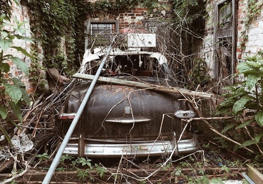 Savā stāvvietā automobilis bija uzglabājies aptuveni 40 gadus, bet “slēptuve” atklājusies vien pēc tam, kad spēcīgais vējš bija sagrāvis trauslos garāžas vārtus.