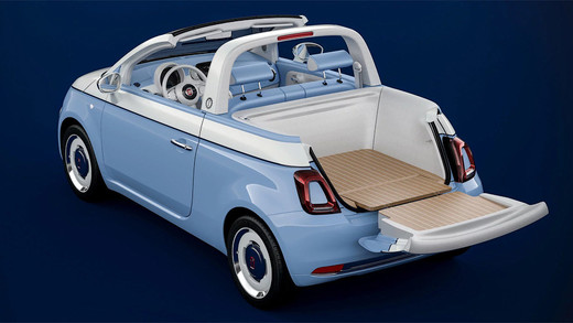 Fiat 500 Spiaggina (pludmales) atšķiras ar divkrāsu virsbūvi, hromētiem spoguļu korpusiem, izpūtēja uzgali un virsbūves dekoriem, retro stila 16 collu riteņu diskiem, durvju rokturiem un virsbūves dekoriem.
