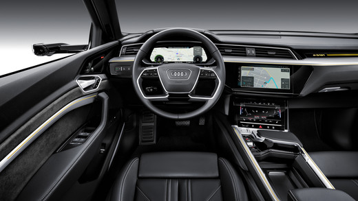 Audi e-tron atspoguļo Audi dizaina pamatus, kas elektriskajā laikmetā izpaužas ar jaunām, stilistiski noteicošām detaļām. Vadītāja zona ir pielāgota šofera ērtībām. Skārienjūtīgais ekrāns, kas pavērsts pret vadītāju, aizstāj gandrīz visus tradicionālos slēdžus un pogas. Daudzas funkcijas ir iespējams kontrolēt arī ar balss vadības sistēmu. Ar standarta Audi virtuālo mērinstrumentu paneli vadītājs var izvēlēties starp diviem skatījumiem, kas skaidri atspoguļo visu informāciju augstas izšķirtspējas grafikās. Izvēlei pieejams arī Audi virtuālais mērinstrumentu panelis plus. Tajā atspoguļota elektriskās piedziņas sistēma.