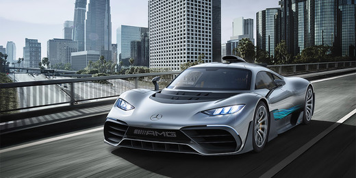 2017.gadā Frankfurtes autoizstādē tika parādīts pirmais One prototips, kas bija aprīkots ar hibrīdsistēmu uz Mercedes F-1 bolīdos izmantotā 1,6 litru V6 turbopūtes agregāta bāzes. Šajā gadījumā iekšdedzes dzinējs darbojas tandēmā ar elektromotoru, kas stiprinās pie aizmugurējās ass. Abu agregātu kopējā jauda ir 680 Zs, taču kopā ar vēl diviem elektromotoriem, kas iemontēti priekšējos riteņos, hibrīdiekārtas kopēja jauda pārsniedz 1000 Zs.