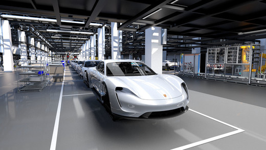 Viens no efektīvas pieejas piemēriem ir jaunā Taycan ražošanas un montāžas telpas, kas pašlaik kā rūpnīca rūpnīcā tiek būvētas galvenajā ražotnē Cufenhauzenē. Šī celtniecība apliecina Porsche atkāpšanos no tradicionālā konveijera principa. Par ražošanu un loģistiku atbildīgais valdes loceklis Albrehts Reimolds paskaidro: „Ieviešot flexi-line ražošanu, Porsche kļūs par pirmo autoražotāju, kas nepārtrauktā sērijveida ražošanā izmanto bezvadītāja transporta sistēmas." Tas sporta automobiļu ražotājam dos iespēju apvienot tradicionālo nepārtrauktās ražošanas principu priekšrocības ar universālās montāžas elastību. Turklāt tas ļaus palielināt darba ciklu skaitu, ko var paveikt tajā pašā platībā. Ievērojot koncepciju „Vieds, zaļš, taupīgs", Porsche ražošana ir arī resursus saudzējoša. Taycan ražošanas process ir ogļskābās gāzes neitrāls, un ražošanas mērķis nākotnē ir izveidot pilnīgu bezietekmes rūpnīcu, kam nav ietekmes uz vidi.