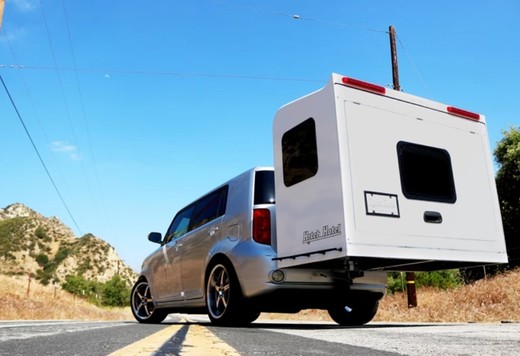 Parasti tādam nolūkam kalpo lielāki vai mazāki treileri (kemperi), taču tas saistīts ar zināmām neērtībām – lielāks svars, sarežģītāka manevrēšana utt. Alternatīva ir kompaktāki risinājumi, piemēram, ASV kompānijas Hitch Hotel izstrādātais „piekarināmais hotelis”, kas maksā tikai 3500 dolāru (aptuveni 3000 eiro). Šādas naktsmājas, kas izgatavotas no alumīnija un oglekļa šķiedras diegiem pastiprināta sintētiskā materiāla, sver tikai 110 kg un ir piestiprināmas uz automašīnas piekabes āķa. Atpūtas brīžos šādu „kasti” izvelk garumā un 224x147 cm izmēru guļamtelpa ar 1700 litru ietilpību ir jūsu rīcībā. No komforta risinājumiem pieejams iebūvēts logs gaismai un svaigam gaisam, lampa telpas izgaismošanai un USB pieslēgvieta dažādām ierīcēm.