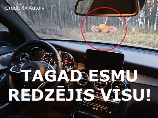 Es nezinu par smaržu, bet instruktors jau sen mācīja, ka pie spoguļiem visādus s***s karināt ir bīstami, jo aizsedz redzamību.