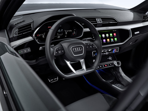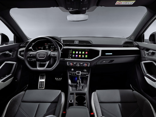 Sportiskais stils apvienojumā ar eleganci turpinās arī salonā, ko tāpat kā Q3, var izvēlēties trīs aprīkojuma versijās (Sportback, Advanced, S-Line). Ciparu mērinstrumentu paneli var izvēlēties divos izpildījumos (10,1 VAI 12,3 collu ekrāns), viedtālruni uzlādēt bezvadu nišā un ar Apple CarPlay savienot ar ekrānu, bet MMI multimediju sistēma var pārvaldīt ar balsi, tāpat kā virtuālo palīgu Alexa. Par piemaksu var pasūtīt Bang & Oluffsen audio iekārtu ar 3D-skaņu.