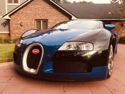 Kādā ASV automobiļu tirdzniecības portālā ievietots sludinājums, kurā īpašnieks piedāvā 2012.gada Bugatti Veyron kopiju, prasot par to 125 000 dolāru.