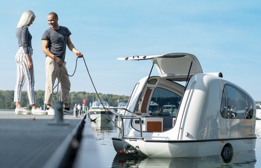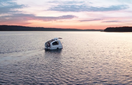 Vācu kompānija Sealander piedāvā interesantu izgudrojumu – kemperi, ko viegli pārvērst par ūdens transportlīdzekli nesteidzīgām ūdens ekskursijām.