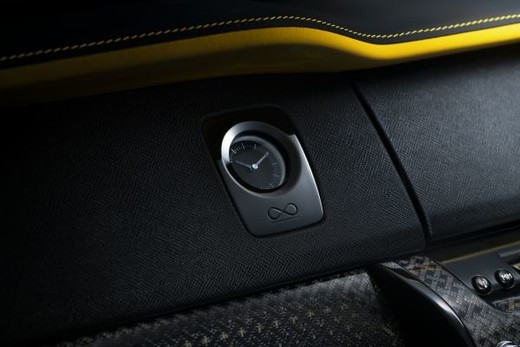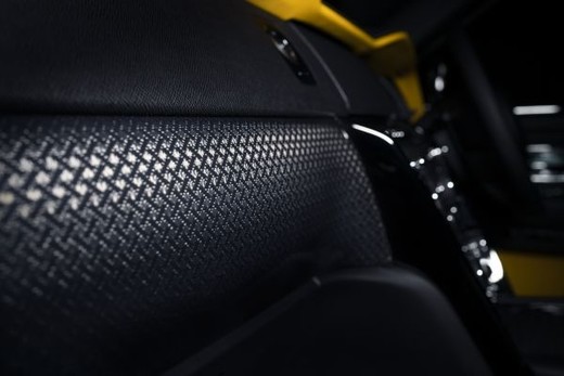 Dzeltenās krāsas Forge Yellow āda un diegi izmantoti, lai atdzīvinātu arī visnotaļ melnā tonī ieturēto salonu, kura galvenā ekstra ir melnie ādas griesti ar 1344 gaismas diodēm un „krītošās zvaigznes” efektu. Izceļas arī dekoratīvo paneļu apdare ar ģeometriska zīmējuma trīsdimensiju efekta apveltīto oglekļa šķiedras materiālu. Katru šādu elementu pārklāj ar sešām lakas kārtām, ļauj tam nožūt 72 stundas un pēc tam ar rokām slīpē līdz iegūst spogulim līdzīgu spīdumu.