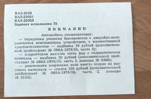 Spriežot pēc dokumentiem, VAZ tika iegādāts 1990.gada 20.jūnijā, dienu pēc pirkuma to piereģistrēja un nolika garāžā. Automašīnai pat nav piemontēts sānu atpakaļskata spogulis, ko kopā ar priekšējo lukturu slotiņām atrada iepakojumā cimdu nodalījumā.