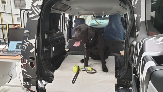 Pateicoties īpašajam jaunā Land Rover Defender krosovera bagāžnieka dizainam, t.i., bagāžnieka durtiņām ar sānos fiksējamām eņģēm un lēzenajam aizmugurējam buferim, uz kura suns var uzkāpt, tika nolemts, ka šis modelis ir lieliski piemērots eksperimentam.