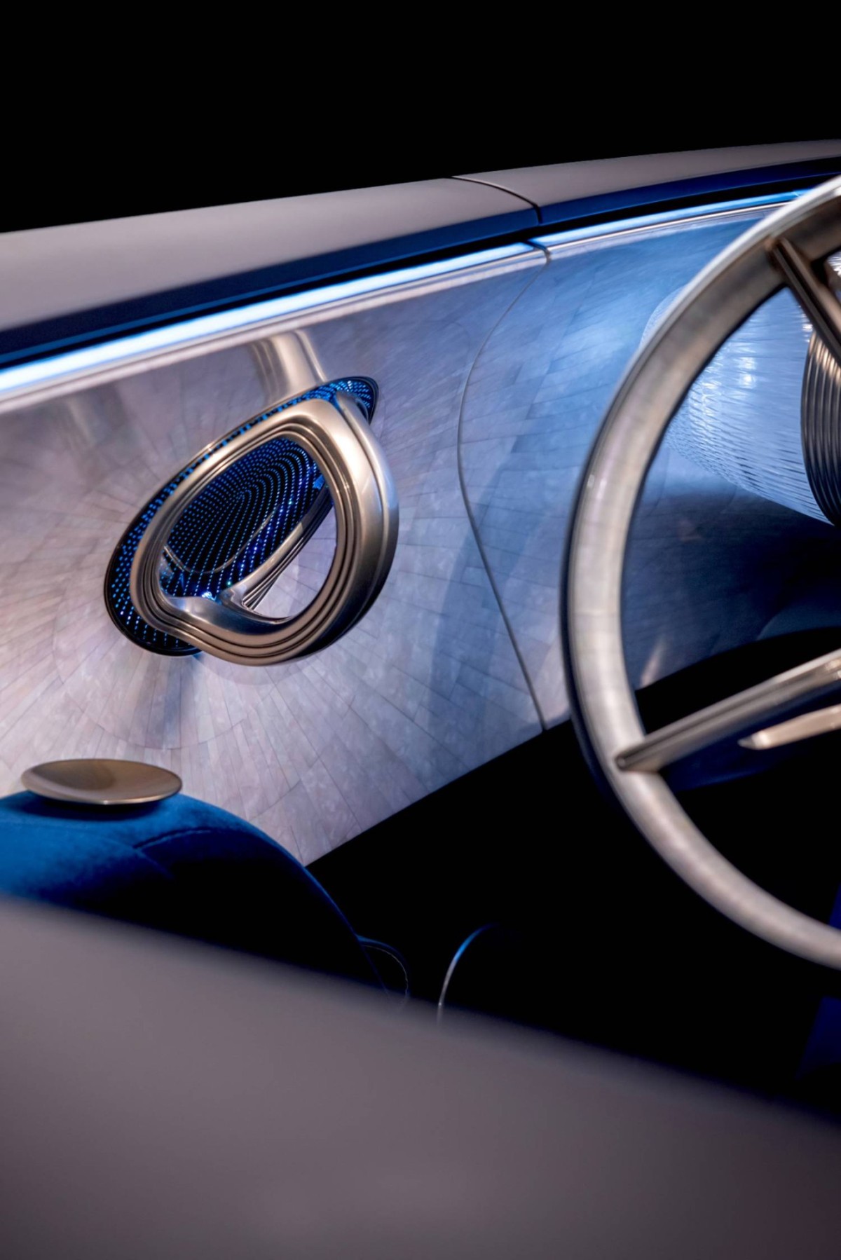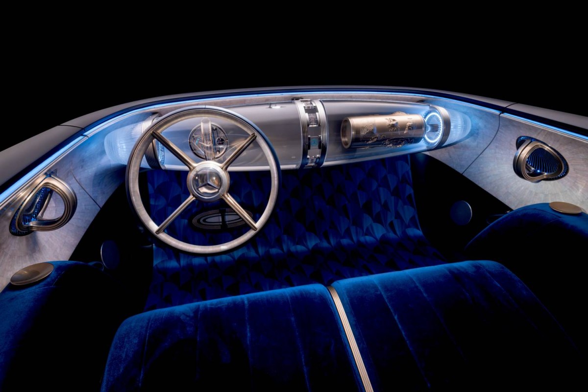 Interjers veidots kā grezna atpūtas telpa, kurā analogie elementi harmoniski saplūst ar digitālajām tehnoloģijām. Ar samtu izdarinātajā salonā iederas gan misiņa durvju rokturi un “peldoša” stikla konstrukciju ar nosaukumu “Zeppelin”, kas apvieno analogus un digitālus displejus, gan Art Deco stilistika ar perlamutra ielaidumiem, salmu intarsijām un elegantu četru spieķu stūri, kurā iestrādāts stikla zīmola logotips.