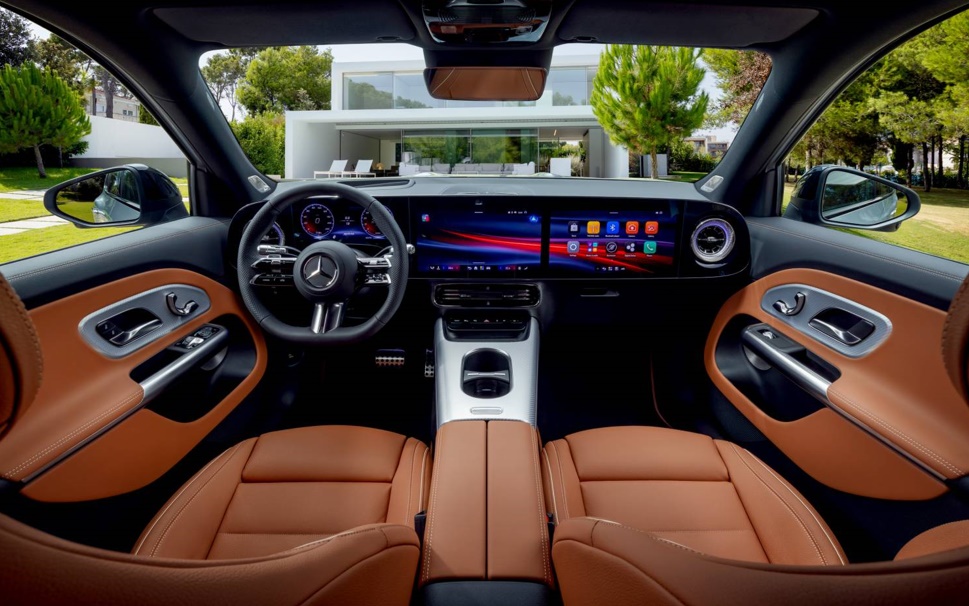 Mercedes GLB pirmizrāde paredzēta 8. decembrī, tomēr jau tagad pieejama attēlu sērija, kas ļauj spriest par jaunā modeļa interjera iekārtojumu. Tāpat kā nesen prezentētajam CLA un CLA Shooting Brake, pārveidotajam GLB būs trīs ekrāni, kas MBUX Superscreen versijā (piemaksa) sakārtoti zem viena kopēja stikla. Lai gan Mercedes vēl nav atklājis ekrānu izmērus, tiek prognozēts 10,25 collu digitālais instrumentu panelis un divi 14 collu skārienekrāni, kuru izkārtojums atgādina CLA, ieskaitot dažas fiziskas vadības ierīces viduskonsolē. Vienkāršojot - viss, kas jums patīk vai nepatīk jaunajā CLA, būs sastopams arī šeit.