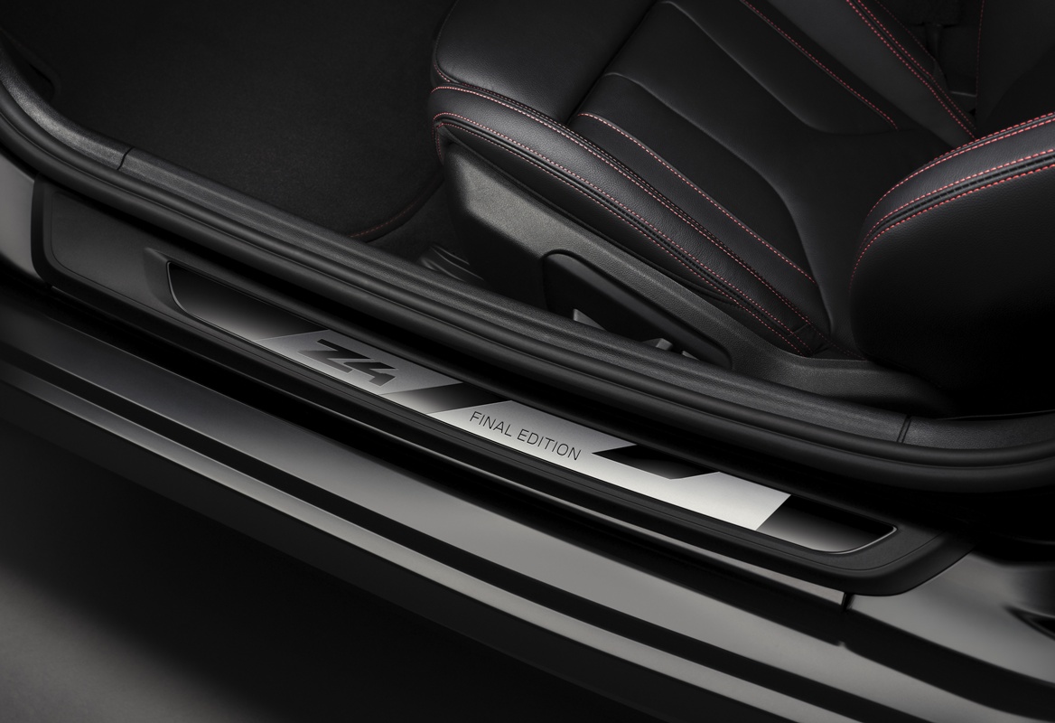 No ārpuses Final Edition visvieglāk atpazīt pēc ekskluzīvā Frozen Matt Black krāsojuma, kas pieejams tikai šai sērijai un apvienots ar M Hochglanz Shadowline elementu izlasi. Papildu akcentu piešķir augstas veiktspējas sarkanās M Sport bremzes, kas izceļas gan ar jaudīgu darbību, gan košu vizuālo tēlu. Arī citu krāsu tīkotājiem nebūs jāskumst, jo no Z4 standarta paletes pieejami arī citi toņi.