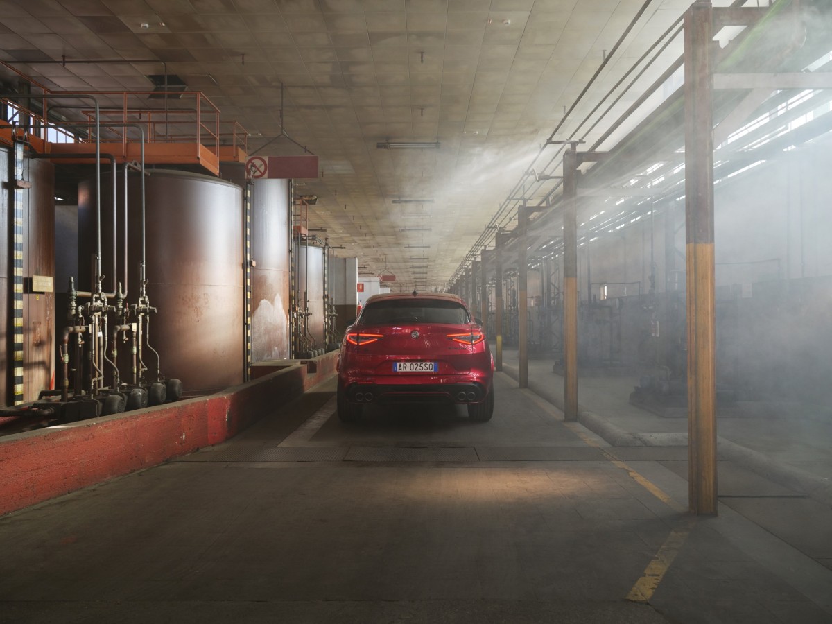 Zem motora pārsega slēpjas 2,9 litru V6 dzinējs, kas attīsta 520 zirgspēkus un skan vēl iespaidīgāk, pateicoties Akrapovič izplūdes sistēmai. Komplektāciju papildina oglekļa šķiedras jumts un keramisko disku bremzes ar Alfa Romeo uzrakstu uz suportiem.
