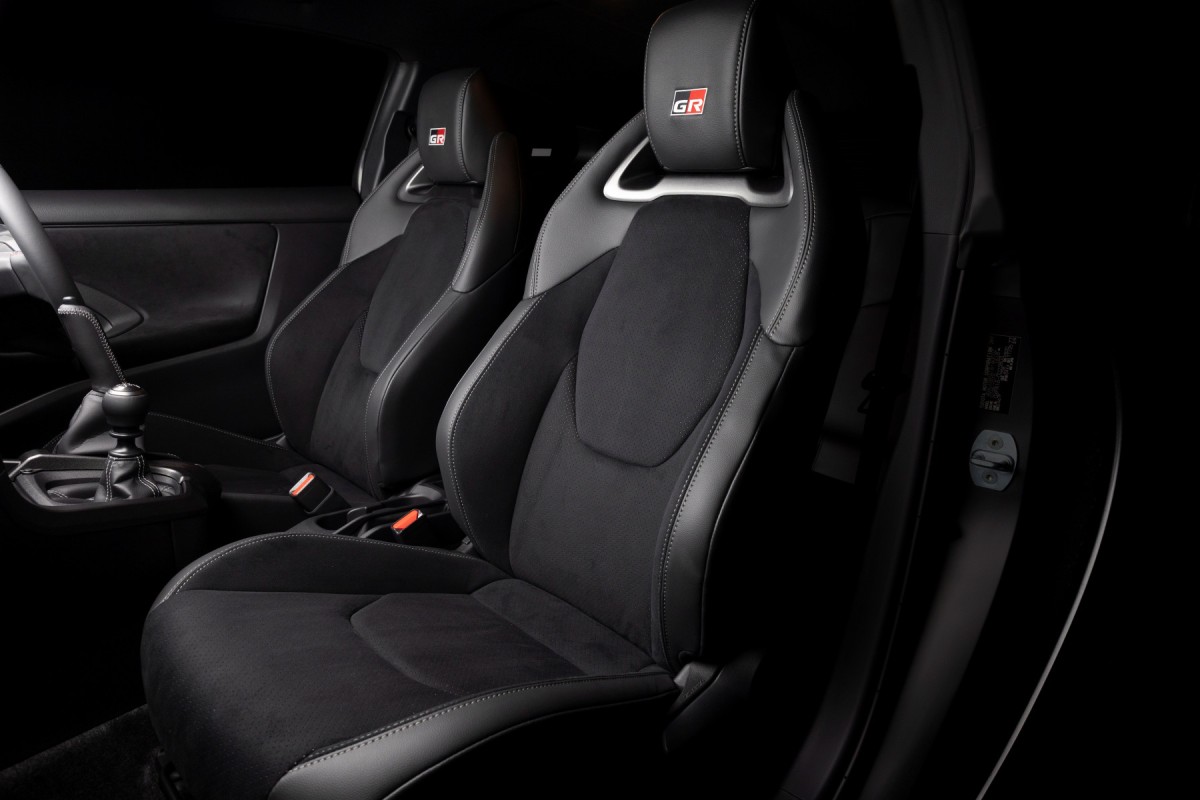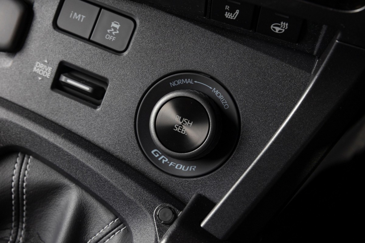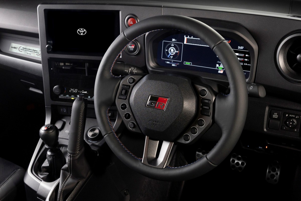 Salonā rallija tematika turpinās ar trīskrāsu šuvēm uz pārveidotā GR sporta stūres rata, kam ir mazāks diametrs un uzlabots slēdžu izvietojums – iedvesmots no Rally2 sacīkšu auto. Vertikālajai rokas bremzei ir ekskluzīvs ādas rokturis, bet sērijas numura plāksnīte atgādina par Ožjē WRC tituliem.