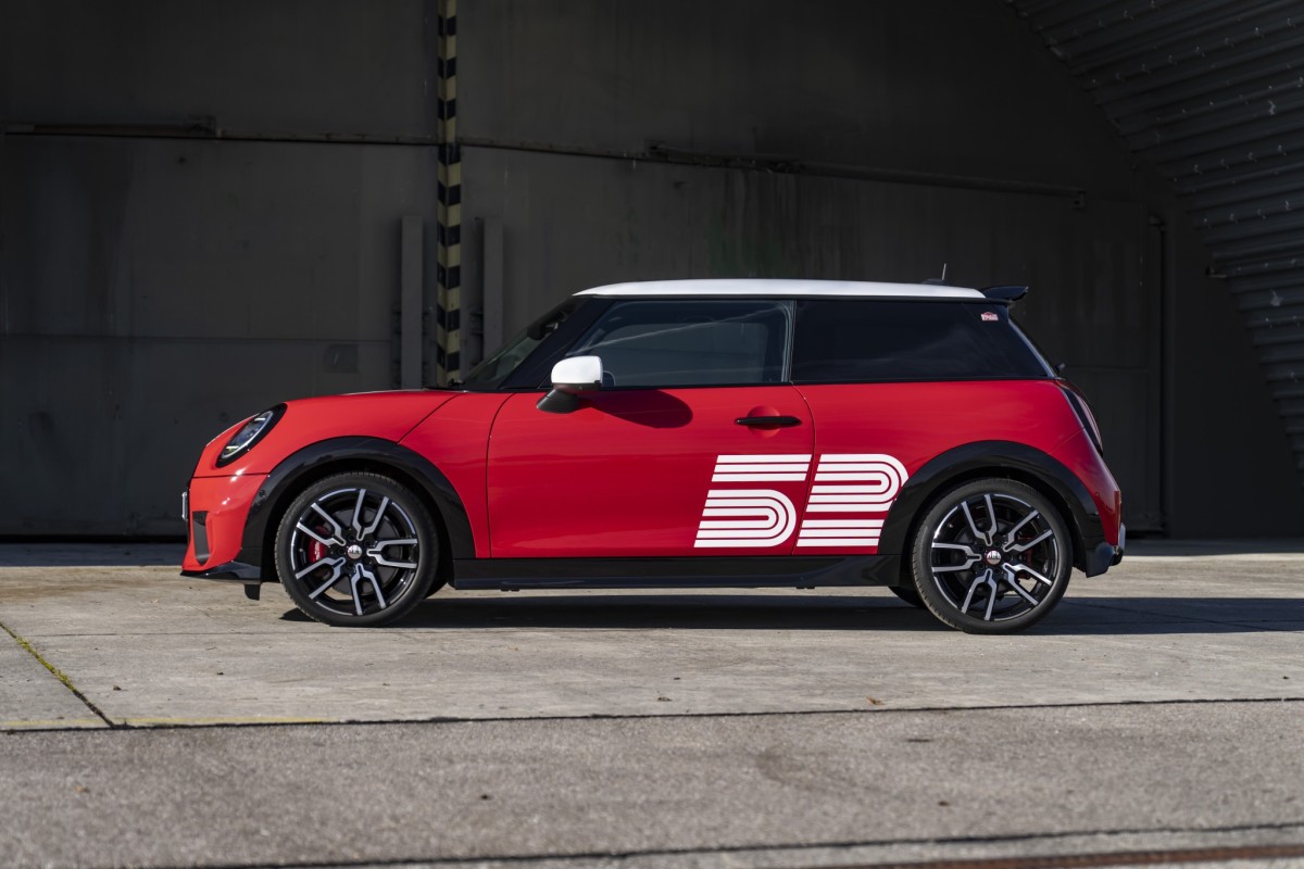 Salona apdarē dominē antracīta un sarkanā krāsa, radot elegantu, bet vienlaikus dinamisku atmosfēru. Pat atslēgas vāciņu rotā uzvarējušā auto starta numurs “52”, pārvēršot katru iedarbināšanas brīdi nelielā atgādinājumā par vienu no spožākajām lappusēm MINI autosporta vēsturē.