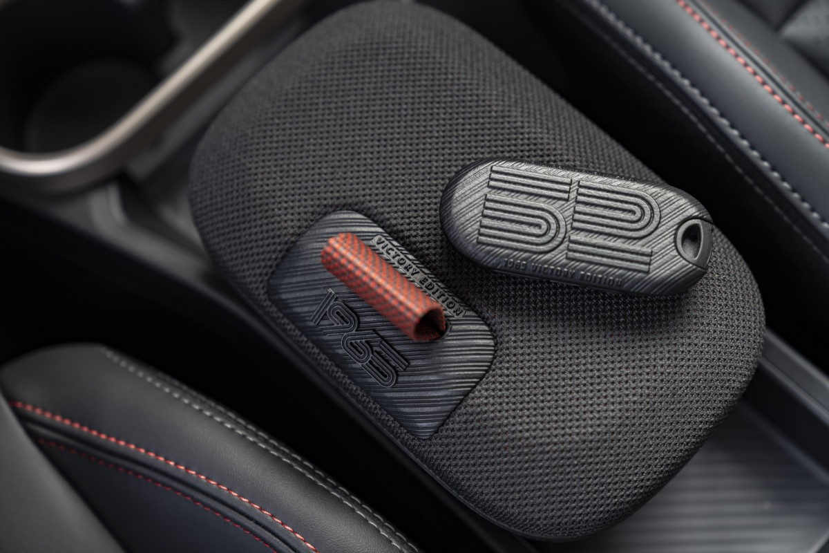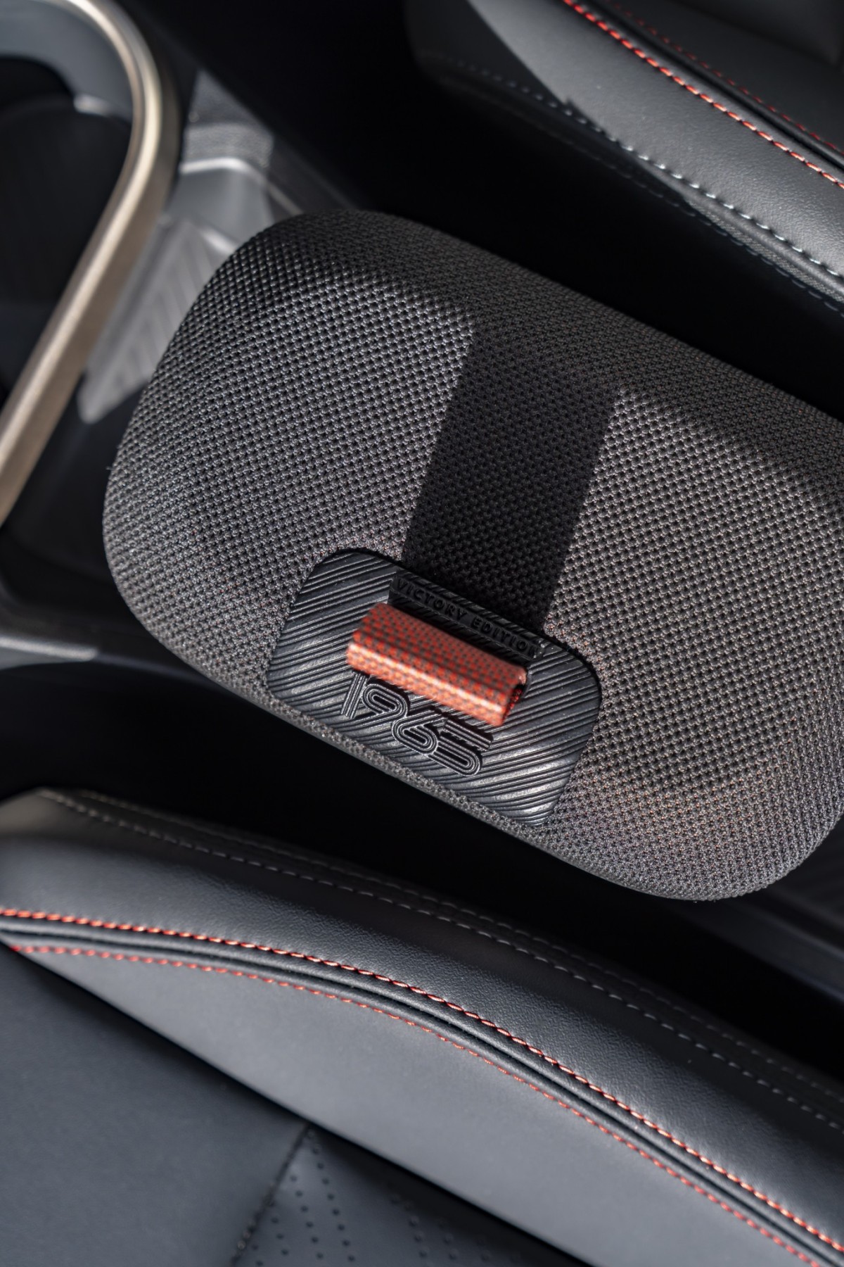 Sportisko tēlu papildina 18 collu vieglmetāla diski ar īpaši šai versijai veidotiem rumbu vāciņiem. Rallija gars turpinās arī salonā – sarkanmelnas sliekšņu uzlikas ar baltu “1965” uzrakstu uzreiz piesaista skatienu, un šis motīvs atkārtojas arī citur interjerā. Katram automobilim durvju iekšpusē ir īpaša piemiņas norāde ar informāciju par vēsturisko ralliju.