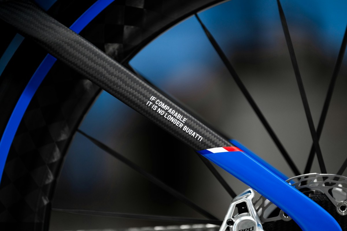 Rezultātā tapa tehniski ļoti progresīvs velosipēds: tam ir īpaši veidota platāka priekšējā dakša labākai aerodinamikai un stabilitātei, pilnībā oglekļa šķiedras rāmis un komponentes, ārkārtīgi viegli riteņi (abu riteņu svars – 1,36 kg), kā arī augstākās klases materiāli, piemēram, Alcantara sēdeklim. Dizainā izmantots Bugatti raksturīgais “French Racing Blue” tonis un zīmola simbols – dejojošais zilonis.