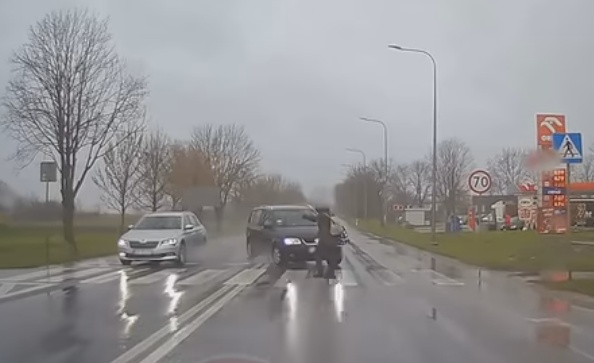 Škoda vadītājs strauji bremzē, lai palaistu gājēju, taču aiz tā braucošais Volkswagen nespēj tik ātri apstāties, šoferis iestūrē pretējā joslā un gandrīz notriec gājēju, kur jau atradās uz pārejas. Lasīt vairāk