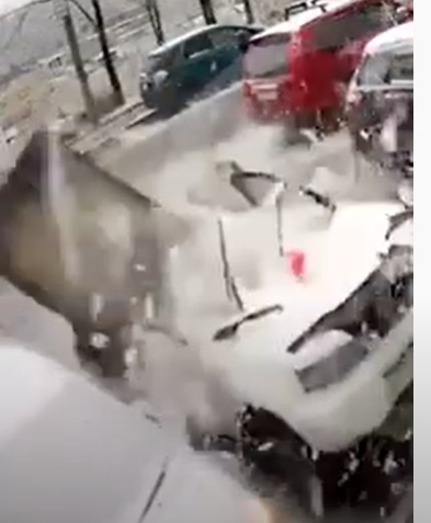 No jumta krītoša dzelzbetona plāksne nogāžas tajā vietā, kur pirms sekundes stāvēja vīrietis un pilnībā iznīcina viņam piederošo automašīnu. Lasīt vairāk