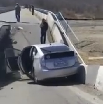 Kad aiz priekšā braucošās kravas mašīnas iegrūst tilta sekcija, vieglā auto vadītājs ir ""pirmais sarakstā". Lasīt vairāk