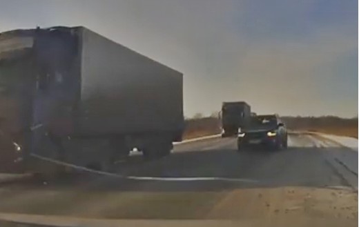 Pretimbraucošais vieglā auto vadītājs, kas uzsācis vairāku kravinieku apdzīšanu nepārredzamā ceļa posmā, video autoram neatstāj citu izvēli (no 0:53). Lasīt vairāk