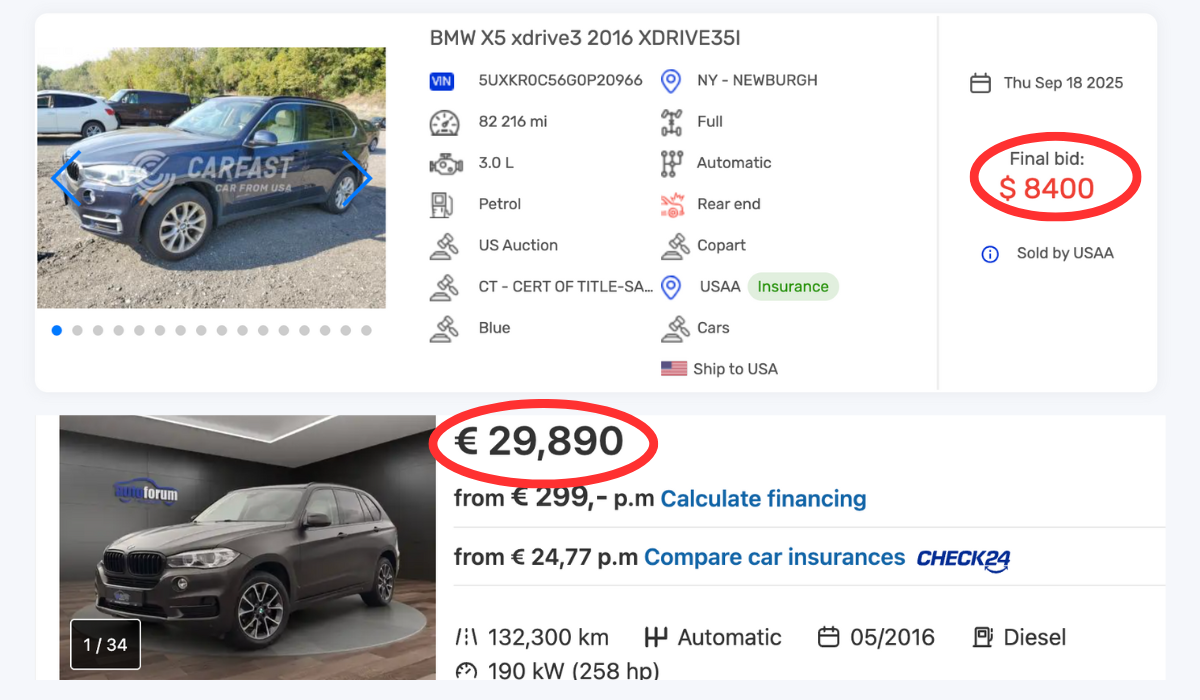 ● izpētiet lotes dažādās platformās, piemēram, Copart un IAAI, jo bieži vien tāds pats modelis citā izsolē maksā lētāk;