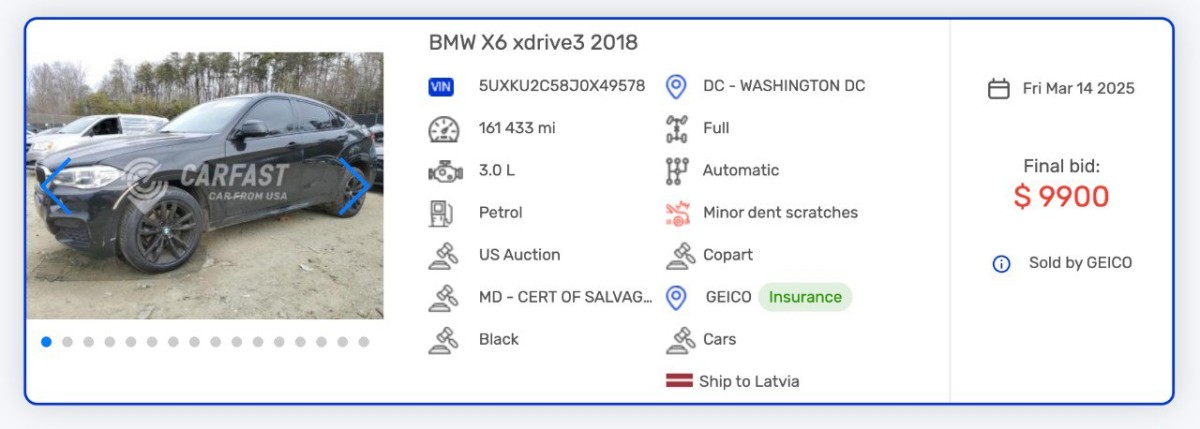 “ASV izsolēs vairāk nekā 40% automašīnu ir slēpti apdrošināšanas gadījumi. Vienīgais veids, kā to atklāt, ir pārbaudīt auto pēc VIN koda pirms pirkuma. Ziņojums parādīs apdrošināšanas izmaksas, avārijas un īpašnieku skaitu, pat ja pārdevējs to noklusē.”