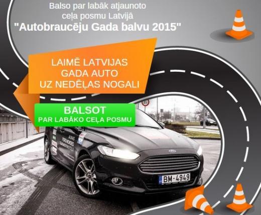Piedalies balsojumā par vienu no 10 atjaunotajiem ceļa posmiem Latvijā un laimē "Latvijas Gada auto 2015" "Ford Mondeo" uz nedēļas nogali ar pilnu bāku! Lasīt vairāk