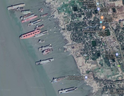 Viena no lielākajām norakstīto kuģu pārstrādes vietām pasaulē atrodas Čitagongā - Bengālijas līča Bangladešas piekrastē.