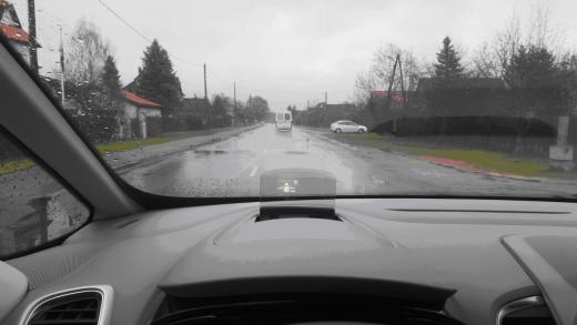 Tiesa gan izslēgt viduskonsolē esošos displejus man tā arī neizdevās, tāpat kā arī mainīt displejā esošo informāciju. Bet visdrīzāk tas ir saistīts ar ierobežoto laiku, kas atvēlēts auto testēšanai (~ 1 stunda). Iedarbinot motoru, no priekšējā paneļa iznirst neliels stikla displejs, uz kura projecējas braukšanas ātrums un ceļa zīmes. Līdzīgs displejs izpeld arī Mazda CX-3, bet par to citā rakstā. Domāju, ka ātruma projecēšana uz priekšējā stikla jau drīz vairs nebūs tikai premium klases automašīnu aprīkojumā, bet arī vidēji dārgās un pat lētās automašīnās. Tik starpība tāda, ka premium klasē ātrums projecējas uz stikla (piemēram BMW X6), bet lētākos – uz alternatīva displeja. Vairākiem žūrijas locekļiem šī opcija likās pilnīgi lieka un pat kaitinoša, bet man personīgi ļoti patika. Iespējams vislabākais pielietojums tam būtu tieši naktī, kad izslēdz paneļa apgaismojumu, lai nežilbina salonā guļošos, bet projekcija paliek. No citos auto neredzētām lietām varu atzīmēt arī to, ka priekšējā panelī tiek atspoguļota distance sekundēs līdz priekšā braucošajam transportlīdzeklim.