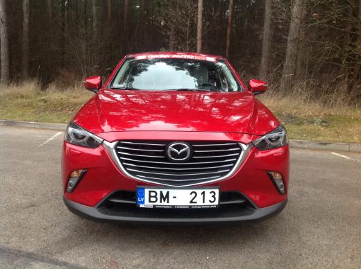 Par MAZDA CX-3. Arī tiku izbraucis šim auto pie stūres lielajā testa dienā.