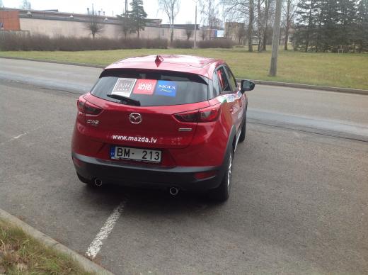 Pirmais stāsts būs par ,,Mazda-CX3,, . Automobilis bija bagātīgākajā no četrām komplektācijām Luxury Plus (vēl ir Active, Premium un Premium Plus). Auto bija ar 1,5 litru 105 zirgspēku dīzeļmotoru (vienīgais pieejamais dīzeļmotora variants), pilnpiedziņu un sešpakāpju automātisko ātrumkārbu. Cenu lapa liecina, ka šāds auto izpildījums ir visdārgākais - auto maksā 29250 EUR, turklāt par metālisko krāsu jāpiemaksā 450 EUR. Testētā auto pašmasa - 1370 kg, pilna masa - 1815 kg. Auto bija piecus mēnešus jauns un ar 11 tūkst.km nobraukumu. Tātad automobilis iebraukts un spējīgs uzrādīt vislabāko sniegumu, kāds tam piemīt.