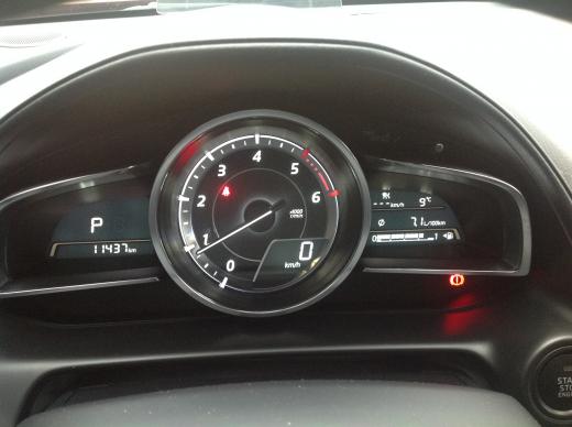 Katrā ziņā gaita ar 16 collu diskiem bija optimāla - ne par cietu, ne mīkstu. Par vadāmību jāsaka, ka izbraucot ārpus pilsētas pirmajos kilometros pie ātruma 80-90 km/h nācās drusku piestūrēt, lai uzturētu taisnu virzienu, taču uz brauciena beigām jau pilnīgi pieradu pie vadīšanas un jāpiestūrē nebija. Skaņas izolācija visumā atbilstoša auto klasei, tā nekādus pārsteigumus neradīja. 105 zirgspēku dīzeļmotora jauda man šķita pilnīgi pietiekama, un sešpakāpju automāta darbība ideāla - gluda, līgana, bez rāvieniem. Sestajā pārnesumā pie 90 km/h tahometrs rādīja 1850 apgriezienus, tātad motors darbojās pietiekami klusi un ekonomiski. Ieslēdzot savā planšetdatorā Waze programmu, pārliecinājos, ka spidometrs melo nedaudz - pie faktiskajiem 90 km/h Mazdas spidometrs rāda 93-94 km/h.