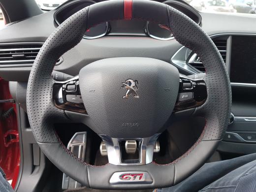 "Peugeot 308 GTi" aprīkots ar 1,6 litru 272 ZS četru cilindru benzīna turbo motoru no "Peugeot RCZ R." Jau no rūpnīcas automobilis apgādāts ar sporta piekari, kas ir par 11 mm zemāka nekā "Peugeot 308" hečbekam, 380 mm bremžu diskiem priekšējai asij, 19 collu riteņiem un Torsena diferenciāli.